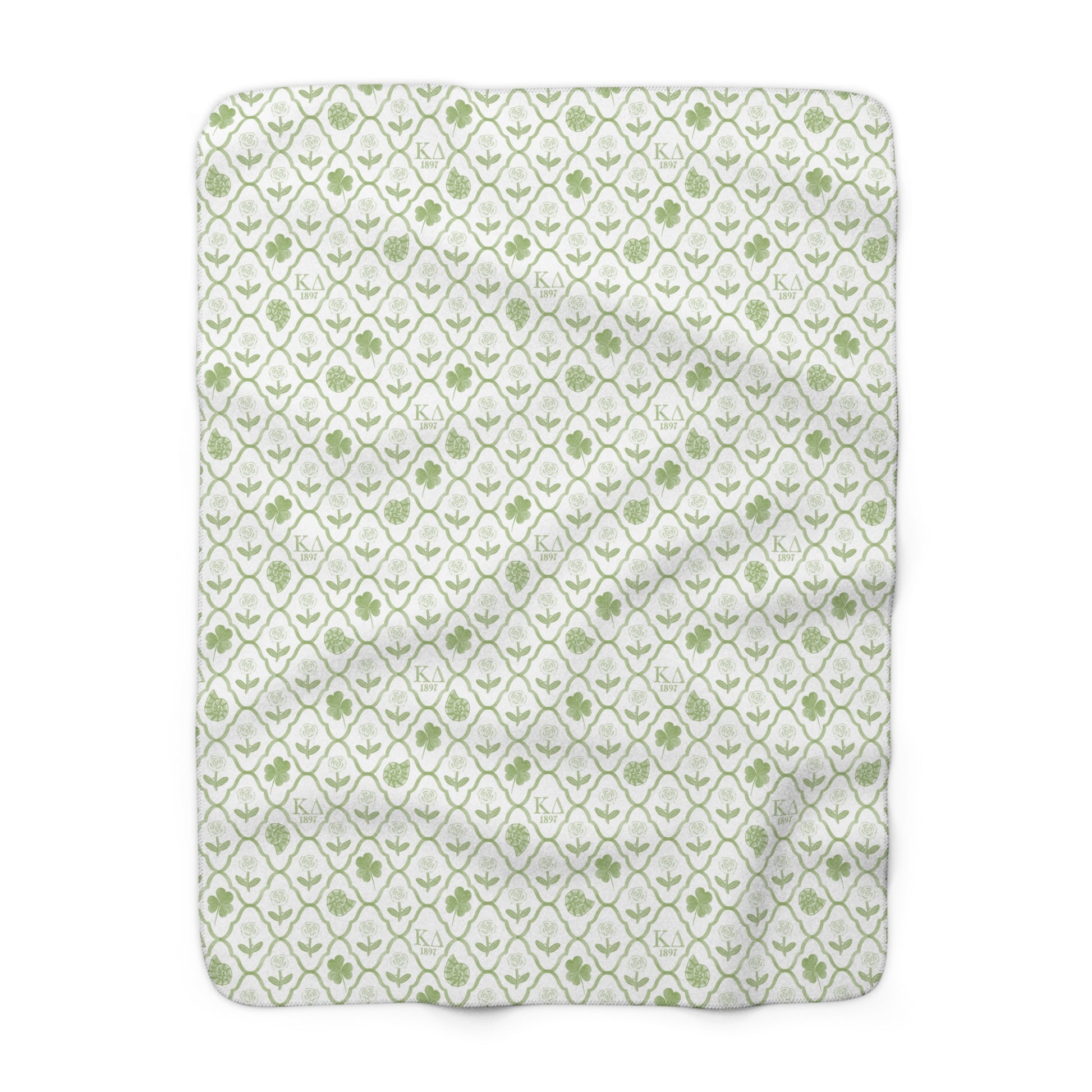 Kappa Delta Fleece Blanket with Roses, Shamrocks, and Nautilus Shells