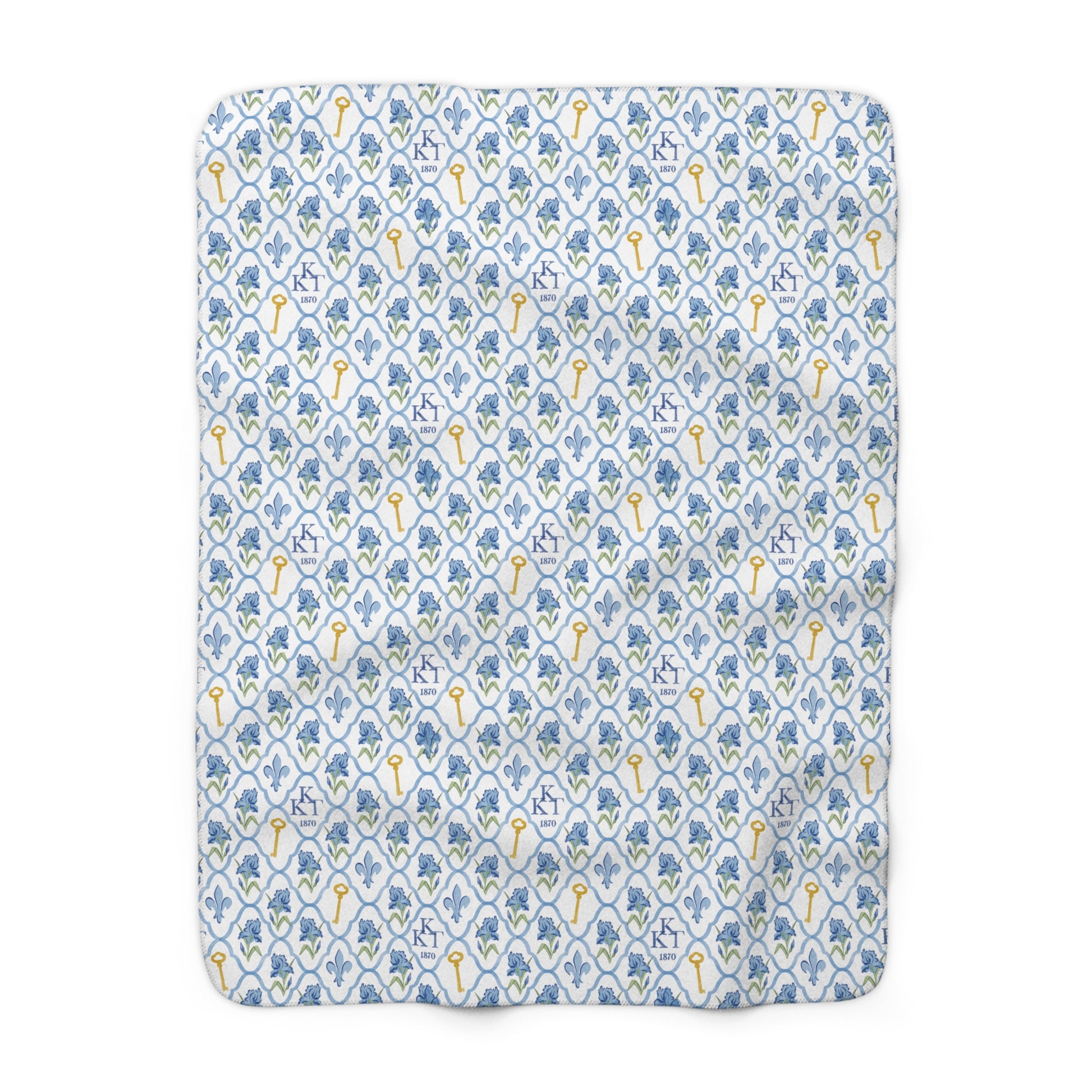 Kappa Kappa Gamma Fleece Blanket with Irises, Keys, and Fleur de Lis Motifs