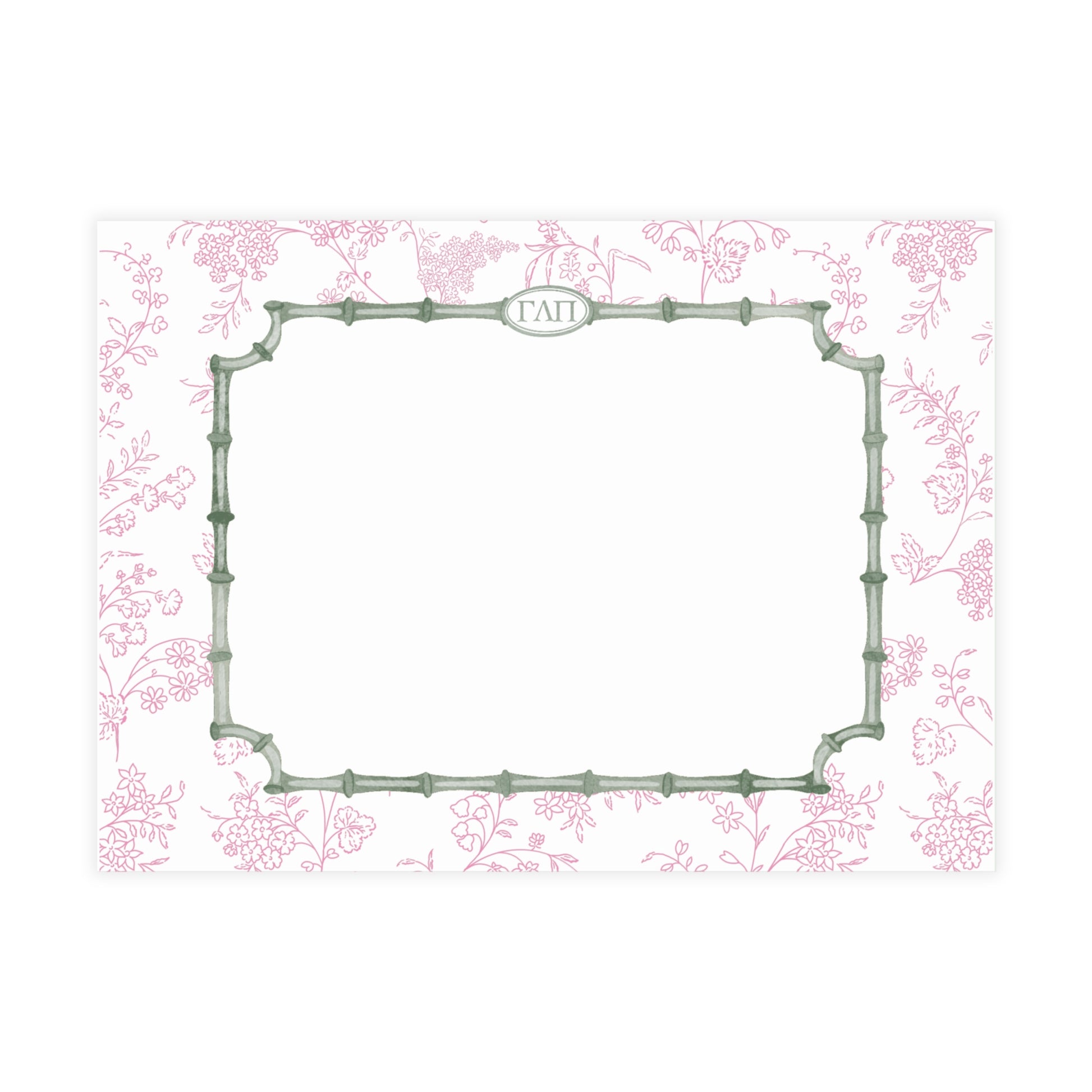 Flat notecards with chapter crest. 6.25 × 4.6", coated both sides. Sets of 10, 30, or 50. Perfect for chapter notes or thank-yous.